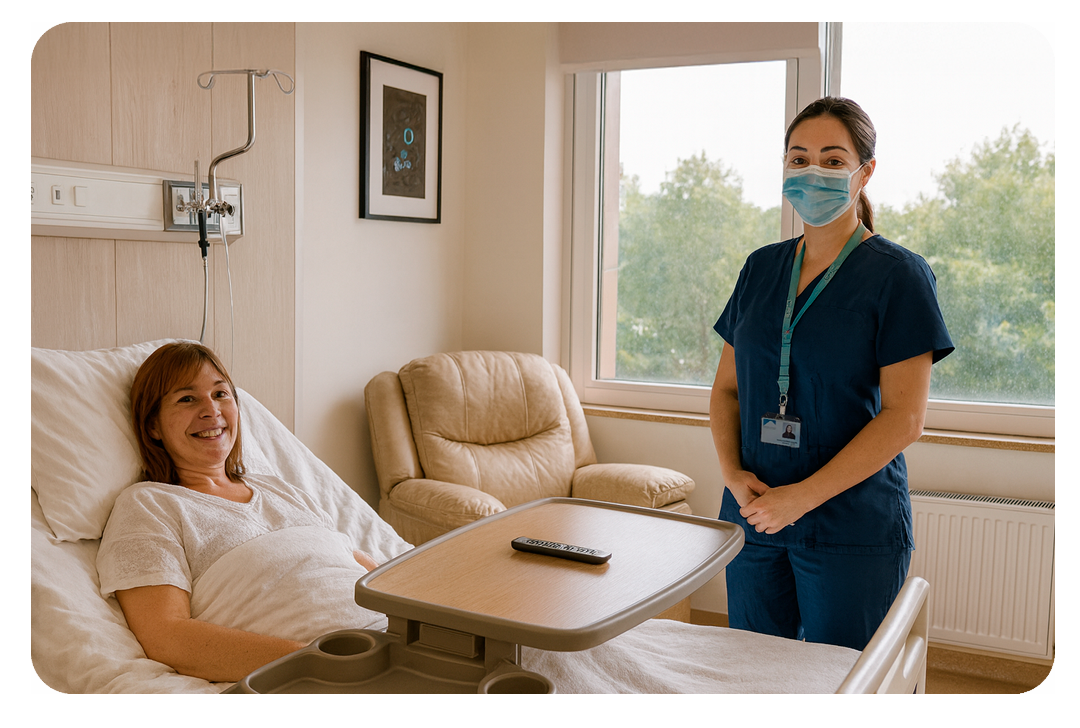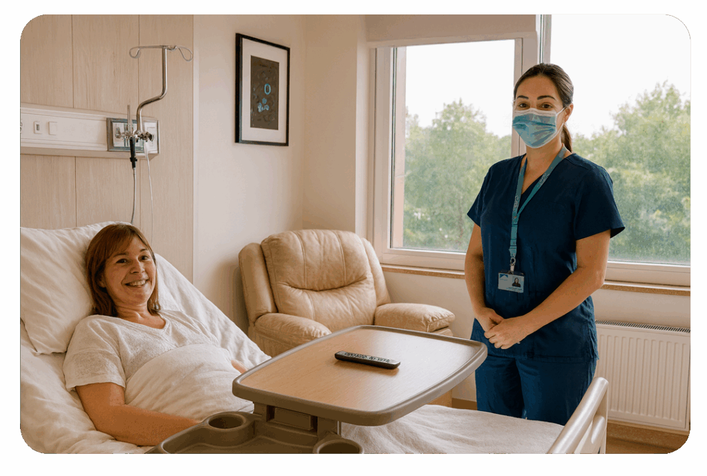 Habitaciones con equipamiento moderno y un equipo profesional comprometido con tu cuidado, disfrutarás de una recuperación tranquila, segura y personalizada.